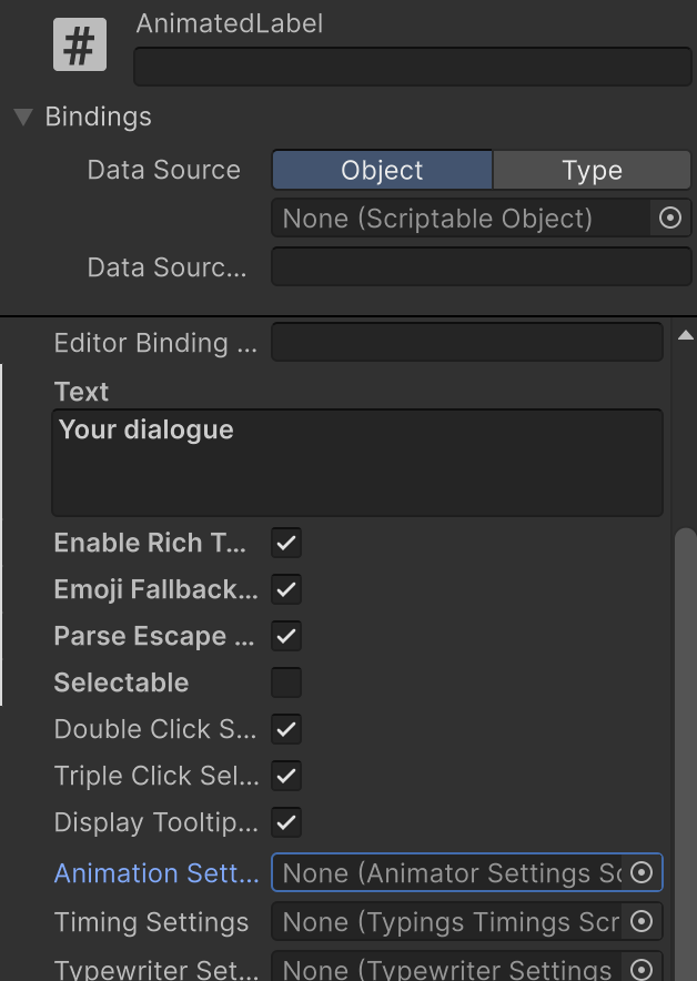 * To modify **shared** settings, assign the relative ScriptableObject instance. [Read more here](https://docs.febucci.com/text-animator-unity/effects/how-to-add-effects/animator-settings).