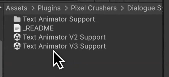**Step 2.** Import the "Text Animator V3" support package from Dialogue System -> Third Party support.