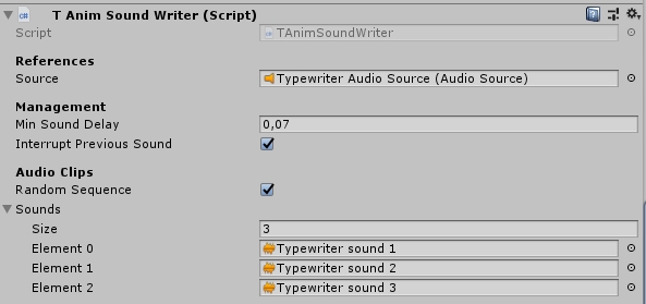 To implement typewriter sounds in your game, you can subscribe to the Typewriter’s “OnCharacterVisible” event and play sounds based on it.